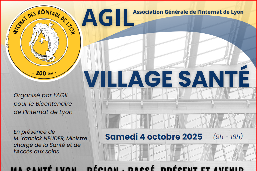 L’Association Générale de l’Internat de Lyon – AGIL – organise le samedi 4 octobre de 9h à 18h, un village santé pour tout public.